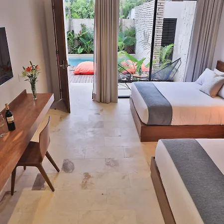 De kamers van dit pand in Tulum Pueblo bevatten airconditioning. Sommigen ervan omvatten een eetgedeelte en een keuken, ingericht met een kastje. Een koelkast en een kookplaat zijn aanwezig en een apart toilet en een douche zijn ook inbegrepen.